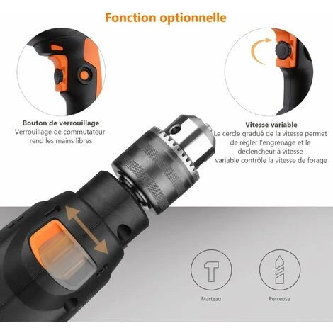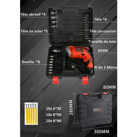 BLACKPINE – Perceuse Percussion, 57pcs Kit D’accessoires, Perceuse à Percussion 850W 3000R/PM, Perforateur Taille De Mandrin 0-13mm