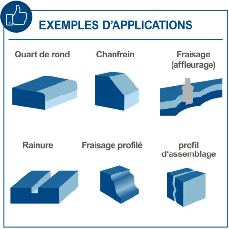 Avec une taille de table de 610 x 360 mm, la fraiseuse à bois peut également être utilisée dans de petits ateliers. Les rallonges de table intégrées des deux côtés agrandissent également la surface de la table et permettent ainsi également l’usinage de grandes pièces et l’exécution de travaux de fraisage spéciaux.