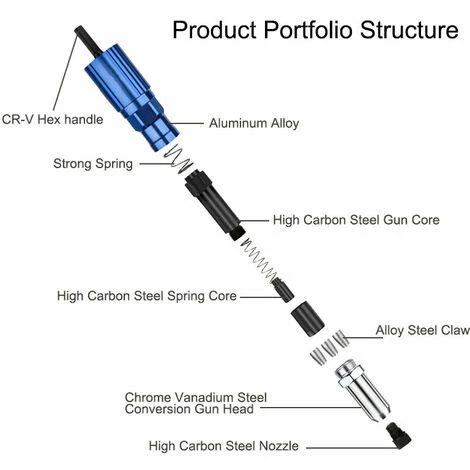 L’outil de rivetage électrique est doté d’une bielle hexagonale à haute dureté, fermement verrouillée, peut être utilisée pour une perceuse électrique au lithium, une perceuse dynamométrique et d’autres types d’exercices. Cet adaptateur de rivet électrique peut transformer votre perceuse sans fil en un outil de rivetage pratique, très pratique pour le monde et pour une utilisation quotidienne. L’outil de rivetage sans fil contient une tête forgée en acier allié avec une dureté, une fermeté et une durabilité élevées qui peuvent économiser du temps et des efforts.