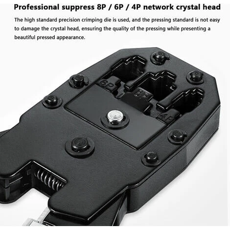 1.Outil de sertissage/coupe/dénudage 3 en 1, qui est parfait pour les connecteurs RJ-45, RJ-11 RJ-12, et convient aux câbles Cat5 et Cat5e avec des fiches 8P8C, 6P6C et 4P4C.