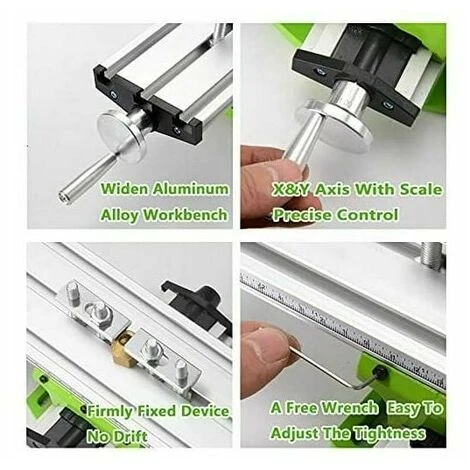 Haute précision : la fraiseuse multifonctionnelle est une machine soigneusement mise au point, composée d’alliages d’aluminium de haute qualité, ce qui garantit un espace minimal et une grande précision. Cette fraiseuse d’établi offre une capacité maximale