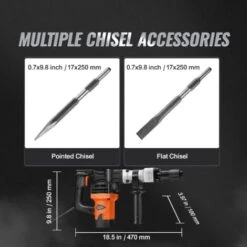 Varan Motors – NEDB-01 Marteau Piqueur – Burineur Marteau De Démolition 1700W 43 Joules + 2 Burins