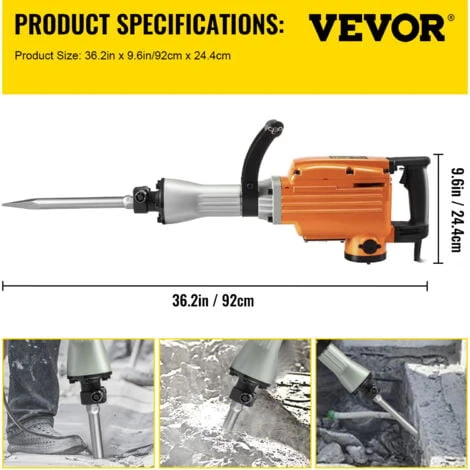 Ideal pour la demolition, le creusement de tranchees, lecaillage, les trous dans le beton, les blocs, les briques, le stuc, etc. Il convient parfaitement a la plomberie, aux installations mecaniques, a la construction deinstallations deapprovisionnement en eau et de drainage, a la decoration interieure, a la construction deinstallations portuaires et a deautres projets de construction.