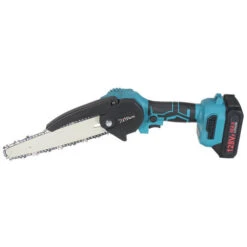 Mini Scie à Chaine Sans Fil électrique 2400W 18V 4 »avec 2 Batteries 18V Bleu Agito