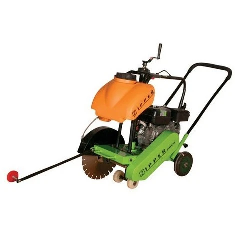 Scie de sol pour coupe à eau ou à sec. Grande poignée de guidage + roue de suivi du trait de coupe. Possibilité de monter des disques diamètre 300 mm et 350 mm, alésage 25,4 mm . Moteur: 1 cylindre, 4 temps OHV. Carburant: Sans plomb. Capacité du réservoir : 3,6 Litres. Puissance: 3,1 kW. Profondeur de coupe avec disque 300 mm : 80 mm et 110 mm avec disque D. 350 mm. Entrainement par courroie avec carter de protection. Démarrage: lanceur manuel. Niveau sonore: 105 dB(A). Livrée avec un disque diamant 350 x 25,4 mm. Poids net : 80 kg