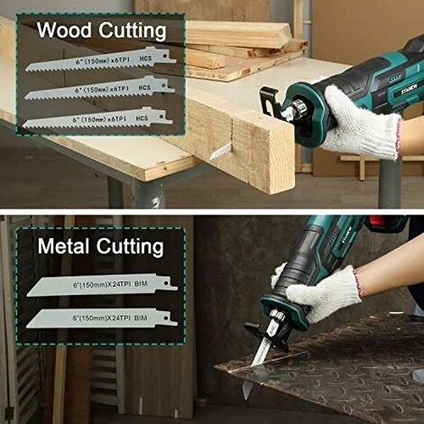 La scie alternative STANEW est livrée avec 3 lames de coupe en bois et 2 lames de coupe en métal. Il peut être utilisé pour couper du bois, du plastique, des plaques métalliques minces, etc. Réalisez vos souhaits de bricolage indépendants.