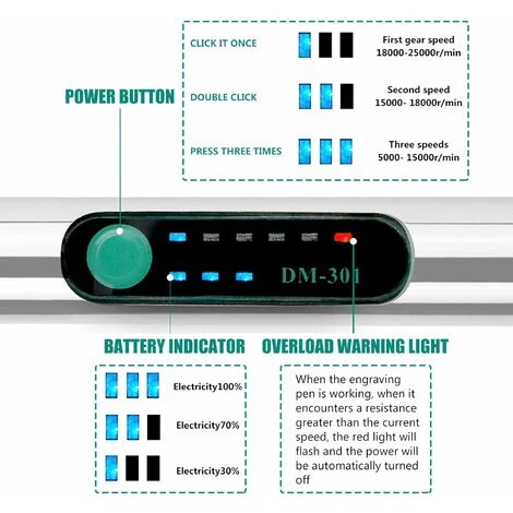 à effectuer un meilleur processus de gravure. [3 niveaux de réglage] : Le stylo de gravure en métal est équipé d’un excellent moteur et la puissance peut atteindre 25 W lorsque vous travaillez. Vitesse réglable à 3 vitesses 5000-25000 tr/min. La vitesse la plus basse vous permet de polir vos ongles