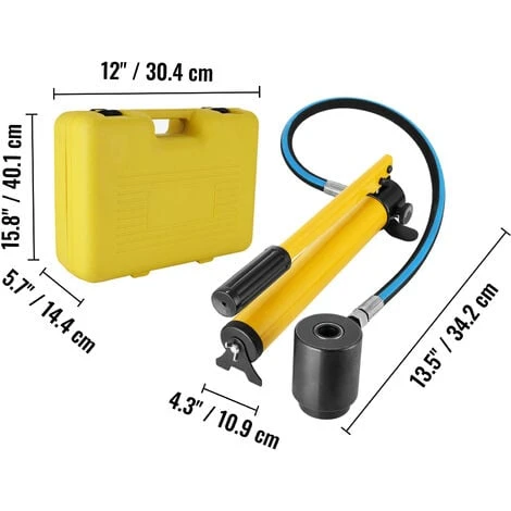 Cet ensemble de poinçons hydraulique à défoncer présente une structure compacte et durable avec une dureté plus élevée et une meilleure qualité, facile à utiliser pour obtenir le trou parfait et uniforme. Il est livré avec six forets pour percer des trous de différentes tailles. Il convient aux travaux de chantier et d’entretien.Caractéristiques
