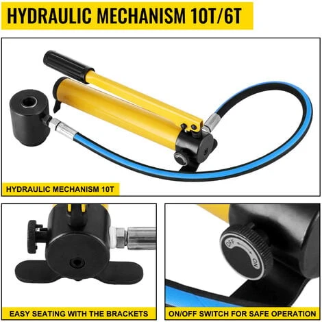 - 【ÉCONOMIE DE MAIN D’ŒUVRE ET HYDRAULIQUE 10T】 – Il s’agit d’un ensemble de poinçons à défoncer avec une pompe hydraulique séparable. La puissance maximale de sertissage est de 10 T. Il présente une bonne étanchéité et aucune fuite d’huile. La pression peut se relâcher automatiquement lorsque la pression atteint le maximum limité, avec la soupape de sécurité.